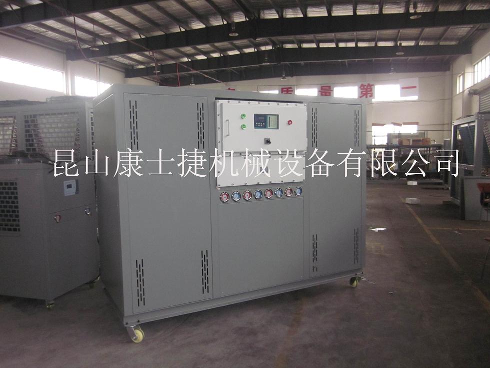 鹽水低溫防爆冷水機是以鹽水為載冷劑的低溫冷水機,控溫范圍在0度到零下50度