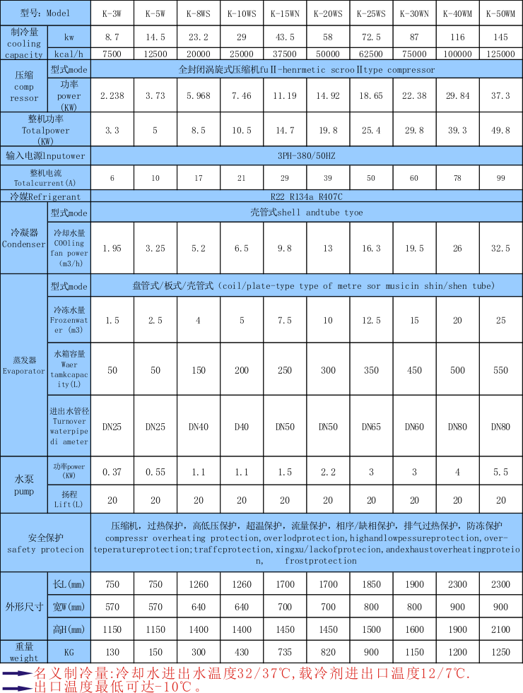 1.壓縮機采用SANYO(三洋)、COPELAND(谷輪)等品牌全封閉全新原裝優質渦旋式壓縮機及各國名廠控制部件和高效殼管式冷凝器、蒸發器組合,超強制冷、寧靜省電,運行可靠,效率高,噪音低。