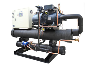 水冷冷水機,又可以分為開放式,密封式(有的稱為箱型)和螺桿式. 先要申明,水冷型的冷水機,都要另外加裝冷卻水塔和水泵,用以抽取熱水散熱.才能達到效好的冷卻效果. 開放式的冷水機,還要另外裝一個水箱,密封式就不必了,因為他自身內置了一個水箱.開放式一般會安裝在車間外某個地方,他檢修方便,但因為不夠美觀,所以就產生了密封式的水冷型冷水機,因為它是一個箱體的結構,所以比較受歡迎. 但是如果您對制冷量的要求非常大的話,就要選用螺桿式的冷水機了,此時我們一般會稱之為冷水機組,大部分的廠家,如果您對冷水機壓縮機的要求達到100HP以上時,他們會建議您用螺桿式的冷水機.