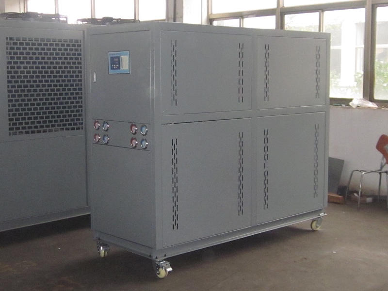 電鍍行業(yè)用電鍍冷水機組: 種類電鍍液冷卻,使金屬、非金屬分子穩(wěn)定.冷水機使金屬分子隨著穩(wěn)定的電流快速貼附上鍍件表面,增加鍍件的密度和平滑,縮短電鍍周期,提高質(zhì)量,并可有效地回收化學(xué)物質(zhì),工業(yè)制冷設(shè)備同理也適用于真空鍍膜工業(yè) 。A.直接冷卻:即鍍液直接通過過濾機或是過濾網(wǎng)進(jìn)入冷凍機的蒸發(fā)器進(jìn)行降溫再回到氧化槽。此冷卻方式的優(yōu)缺點:冷卻時間短、效果好;缺點就是蒸發(fā)器需要做防腐處理(一般采用鈦合金),蒸發(fā)器里容易結(jié)垢,需定期清洗,否則影響制冷效果和機器運行。B.間接冷卻:氧化槽里鋪置鈦管,冷凍水通過鈦管帶走渡液熱量達(dá)到降溫目的;若鋪鈦管不便可添一換熱器(需是鈦合金制成)一邊走冷凍水一邊走鍍液。